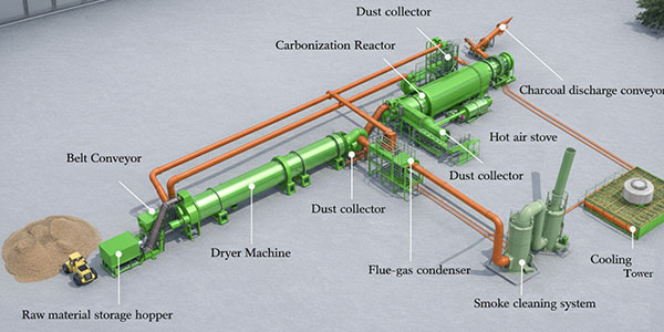 Design, manufacturing, and erection of the 1 TPH Continuous Carbonization System with rotary dryer including complete engineering, fabrication, and on-site installation, as per the specifications given below.